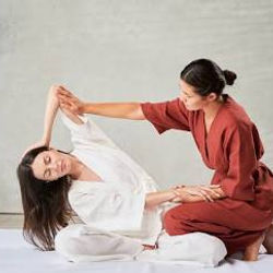 Thai massage is a unique form of body work that combines acupressure and Indian Ayurvedic principles and assisted yoga postures. the therapist uses their hands,knees, legs and feet to stretch and stimulate pressure points along the bodies energy lines known as Sen lines to improve flexibility, relieve muscle and joint pain and balance the body's energy systems. it's both invigorating and relaxing.